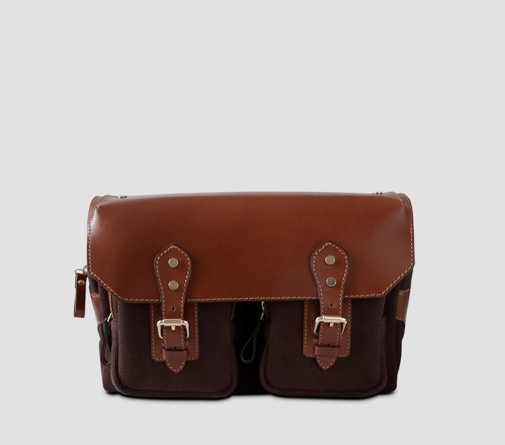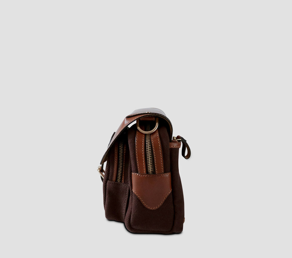 The Westbrooke Travel Sling is a compact yet versatile accessory handcrafted in canvas and harness leather. Equipped with two pockets secured by zipper and buckle closures, it opens to a spacious interior with one slip-in pocket. The strap of this adaptable travel sling can be easily removed, facilitating ease and comfort.