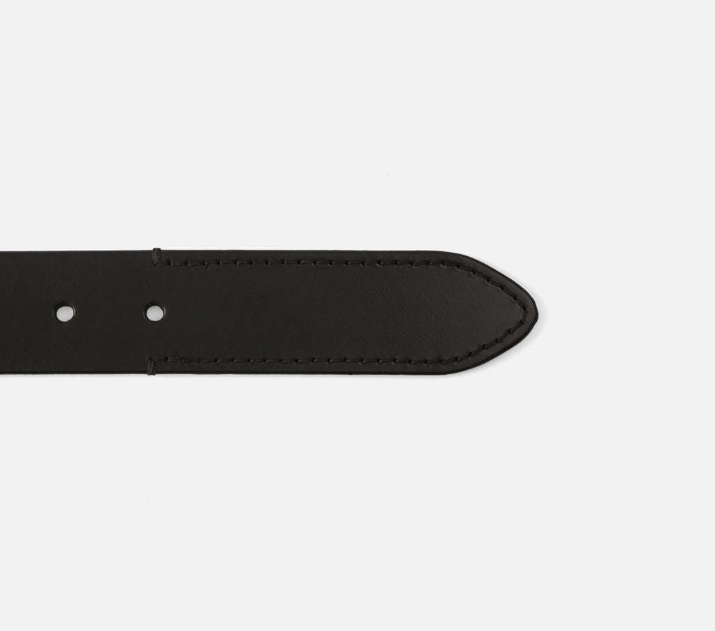Subtle yet distinctive, the Ridge Belt is handcrafted from premium harness leather and features a distinct stitching detail at the end—adding character to its minimalist silhouette. It also includes a rectangular buckle with rounded edges for a modern touch and a simple single loop for a clean finish.