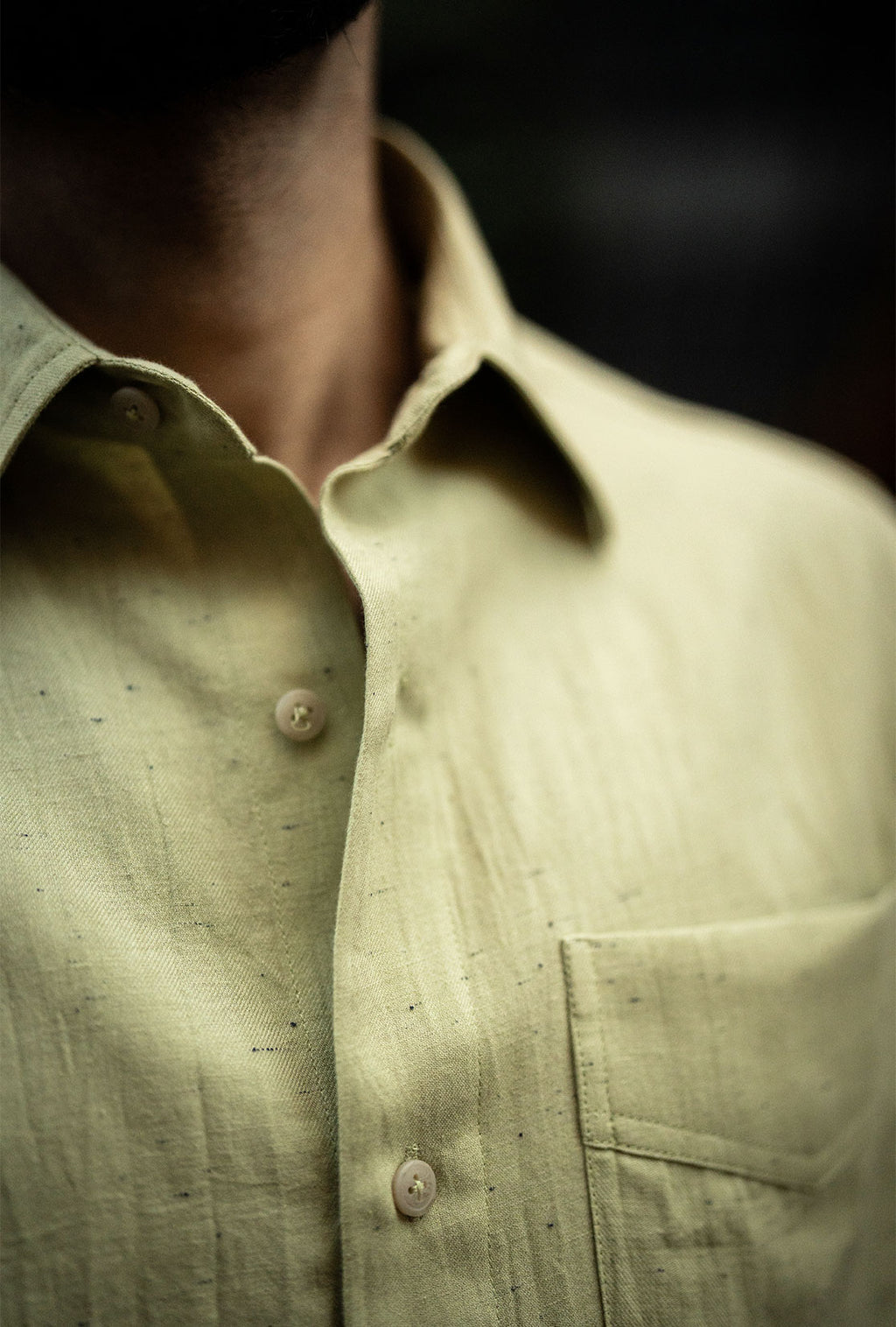 Inspired by the hypnotic rhythmmograms of Heinrich Heidersberger, the Stratum Shirt features a sophisticated blend of movement and structure. Cut from black dotted slub fabric, it features an engineered pattern with a regular armhole in the front and raglan sleeves at the back. Signature Dori placket detailing, contrast yoke panel, underarm vents, and a center back seam come together in a shirt that is as visually dynamic as it is breathable.