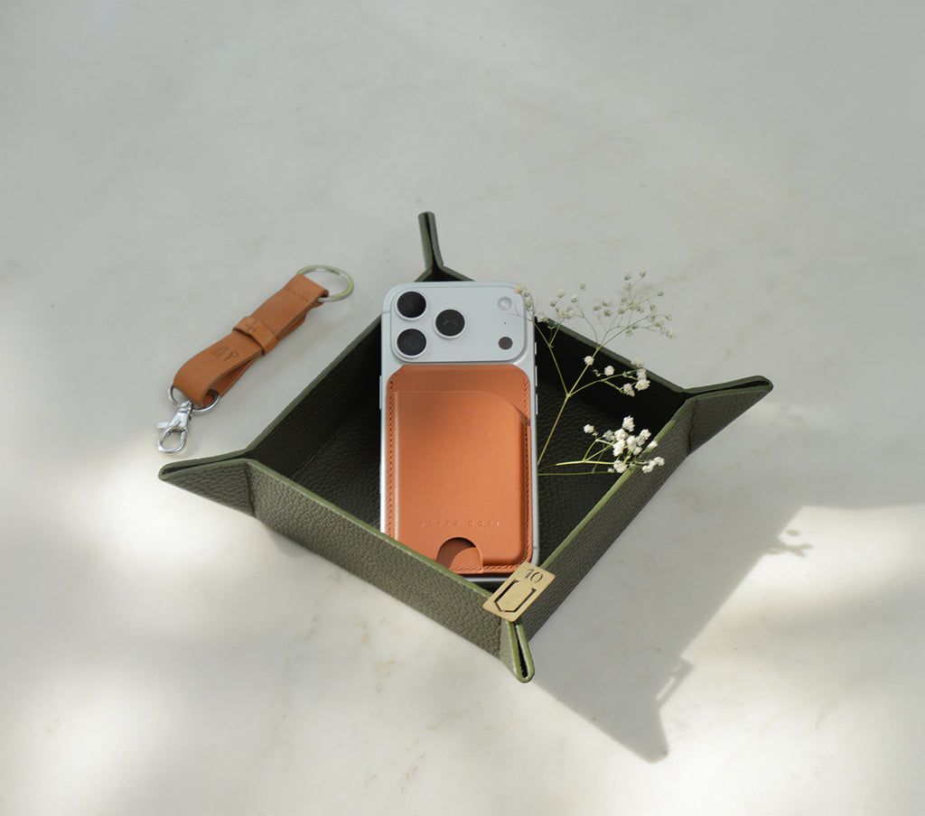 Elevate your everyday organization with the Catchall Tray by Nappa Dori. Designed to keep all your small trinkets and essentials in one place, the tray adds a piece of elegance to your personal space, whether it's your work desk, nightstand, or while traveling. The tray is designed for minimalists who enjoy compact utility with a touch of luxury.