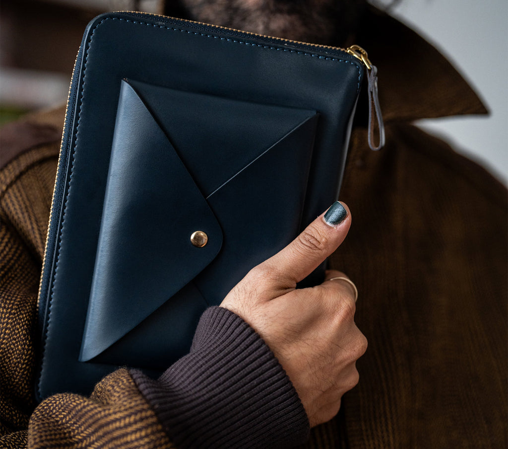 Harness Organiser 02 is the ultimate organiser for all your essential business and travel needs. Made to meet all standards, it is handcrafted in fine quality genuine harness leather. The envelope pocket on its supple exterior protects your precious pieces on the go and adds an element of versatility. Ideal for an A5 notebook, it is also convenient for storing your important files and documents. Comes equipped with five slip-in pockets, three card holders, and a pen loop, all in the embrace of herringbone lining inside.